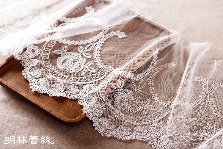 【明林蕾絲-小天馬】歐式浪漫花板-繩股滾邊蕾絲條碼-MIT台灣製-寬約26cmx長30cm (米白) | 明林蕾絲