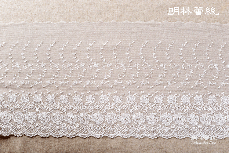 【明林蕾絲-小天馬】歐式浪漫花板-爬藤與花滾邊蕾絲條碼-MIT台灣製-寬約20cmx長30cm (米白)